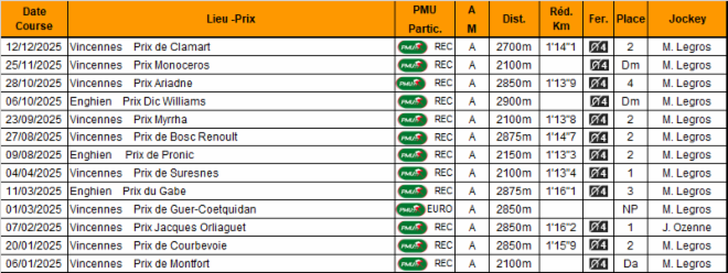 2ème à Vincennes le 12 décembre 2025