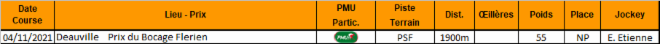 Lors de sa dernière victoire le 30/11/2020 à Deauville