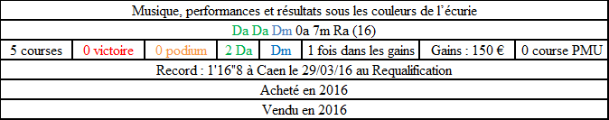 Requalifiée en 1'16"8 à Caen le 29 mars 2016