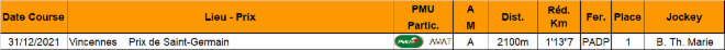 Victoire à Vincennes le 31 décembre 2021