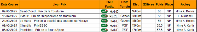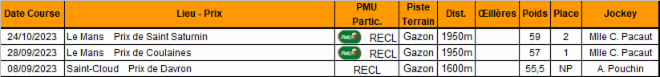 Début sous les couleurs de l'écurie le 08 septembre 2023